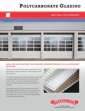 - Insulated glass, tempered glass, polycarbonate, multi-wall polycarbonate, etc.