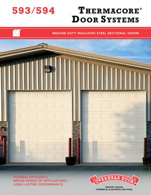 The Thermacore® Sectional Door Model 593 is one of the best-selling doors in the Thermacore® line, and offers superior thermal efficiency to fit a broad range of applications. The Model 593 exterior skin is constructed of galvanized steel with a ribbed, textured finish. It is available with a white interior finish and a choice of white, industrial brown, tan or gray exterior. The Thermacore® Model 593 offers excellent thermal efficiency for medium-duty applications.